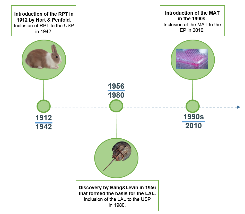 In 1912, Hort and Penfold were the first to develop a pyrogen test which was based on parenteral administration of pharmaceuticals into rabbits and measuring the possible rise in body temperature, known as the Rabbit Pyrogen Test (RPT). In 1942, the test was included in the 12th edition of the United States Pharmacopeia (USP) as a pyrogen test.